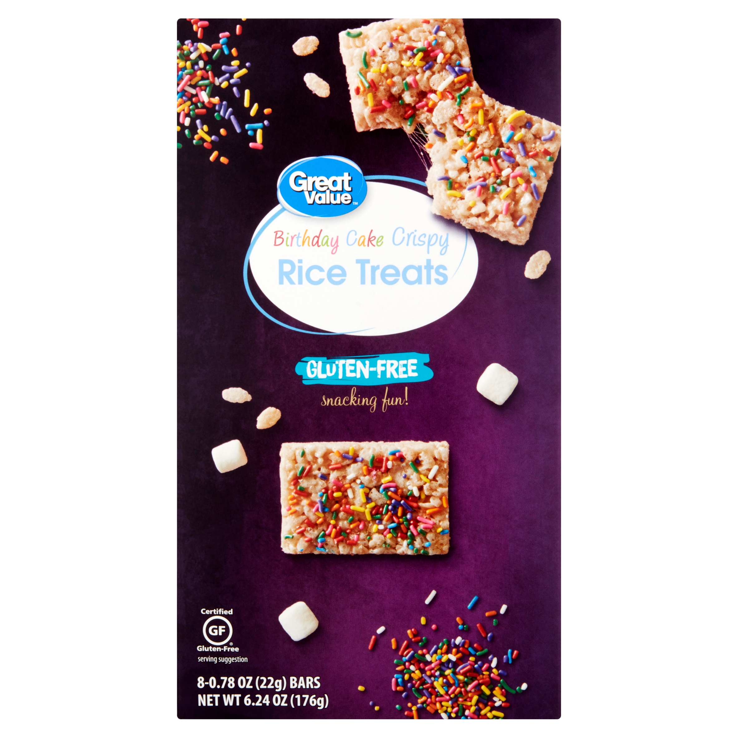 Great Value Gluten Free Birthday Cake Crispy Rice Treats 0 78 Oz 8 Count Walmart Com